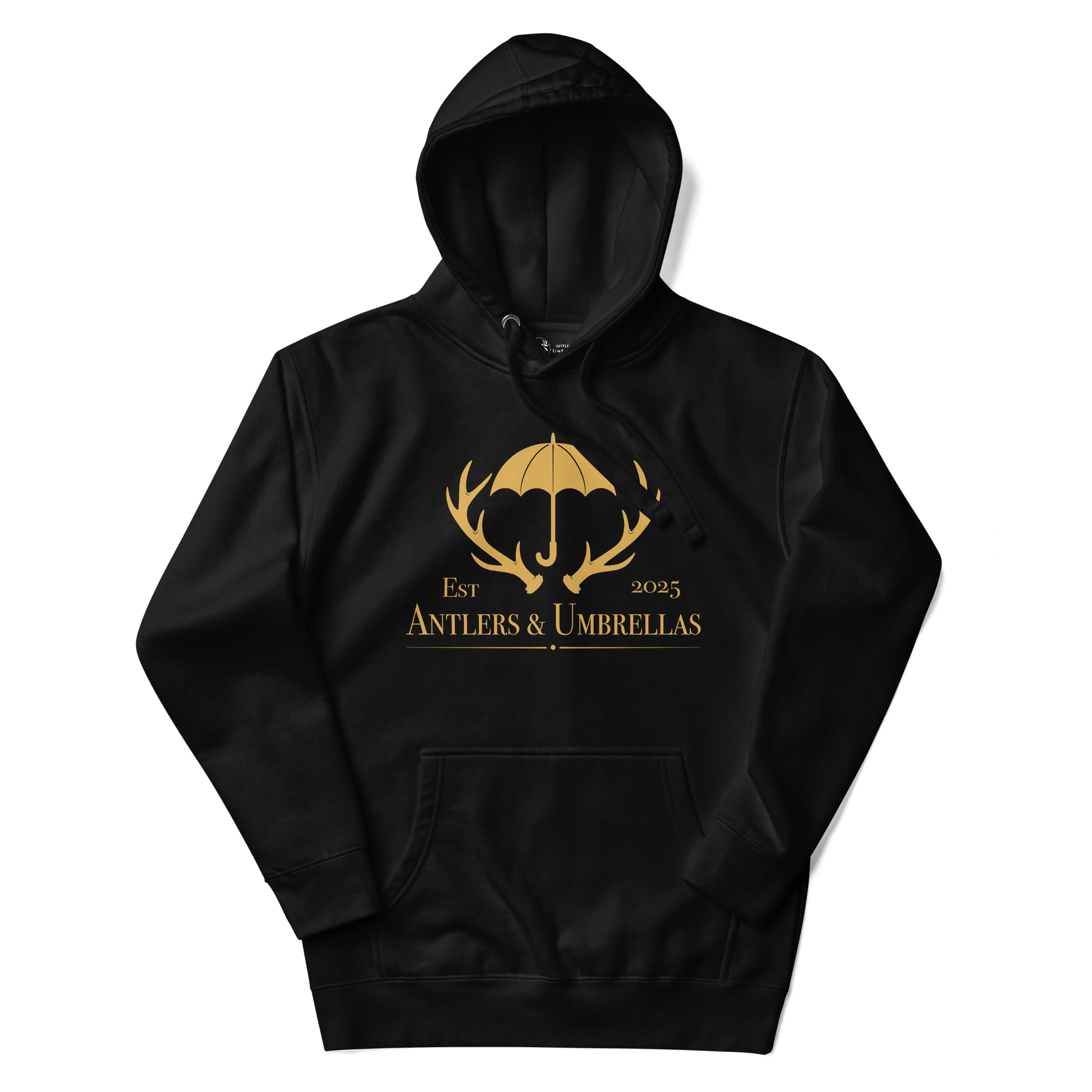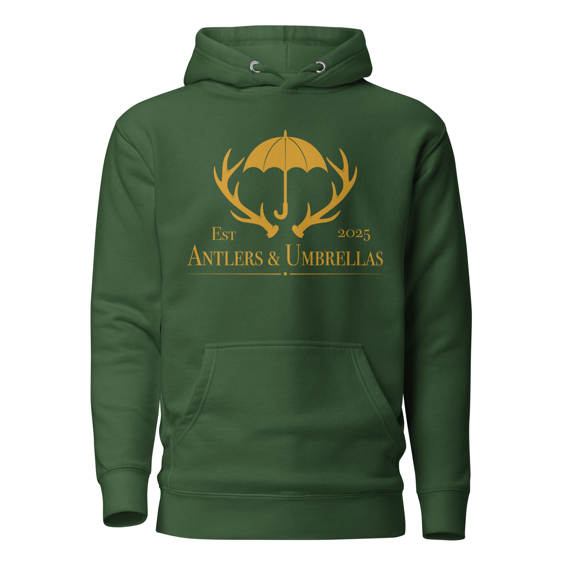 This soft hoodie features the Est 2025 logo from Antlers & Umbrellas, combining comfort and character in one clean design.